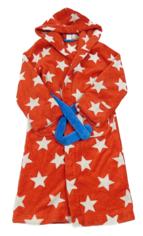 Červený plyšový župan s bílými hvězdičkami a kapucí Mini Boden