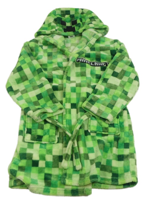 Zelený kostkovaný plyšový župan s kapucí - Minecraft