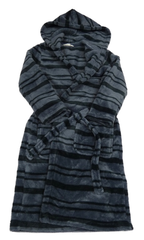 Tmavošedo-černý pruhovaný chlupatý župan s kapucí