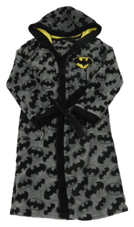 Šedo-černý chlupatý župan s Batmanem a kapucí