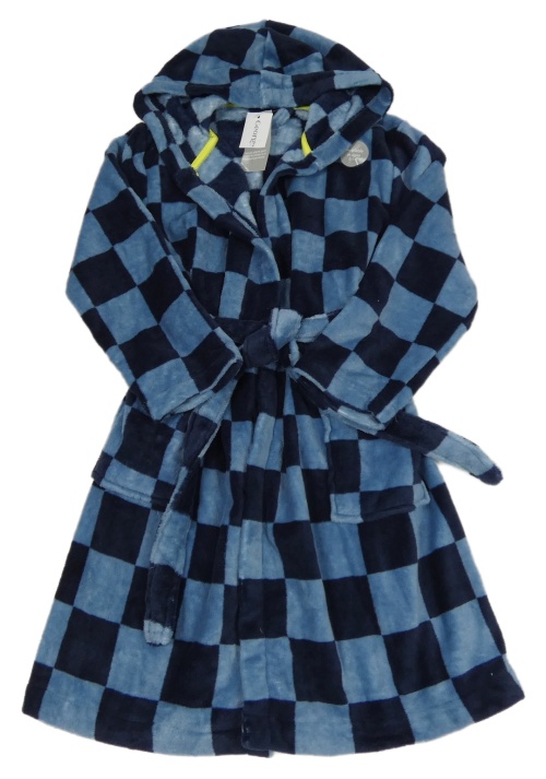 Nové - Tmavomodro-modrý kostkovaný chlupatý župan s kapucí George