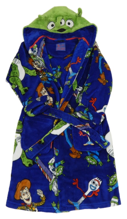 Tmavomodrý chlupatý župan s Toy Story a kapucí Tu