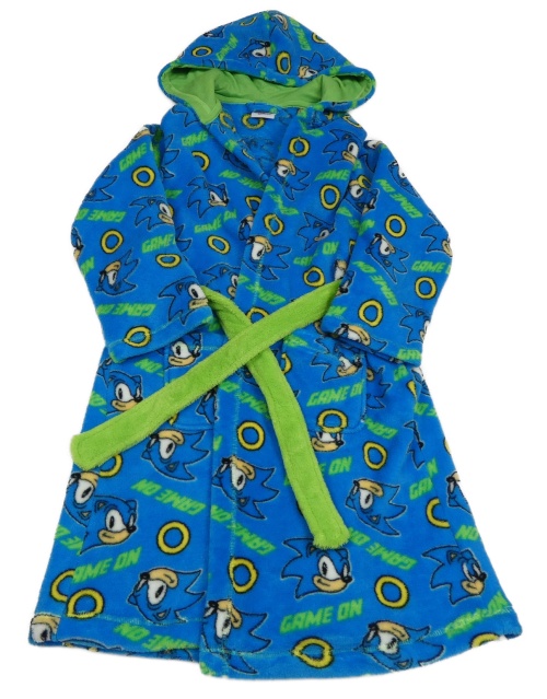 Modrý plyšový župan se Sonicem a kapucí