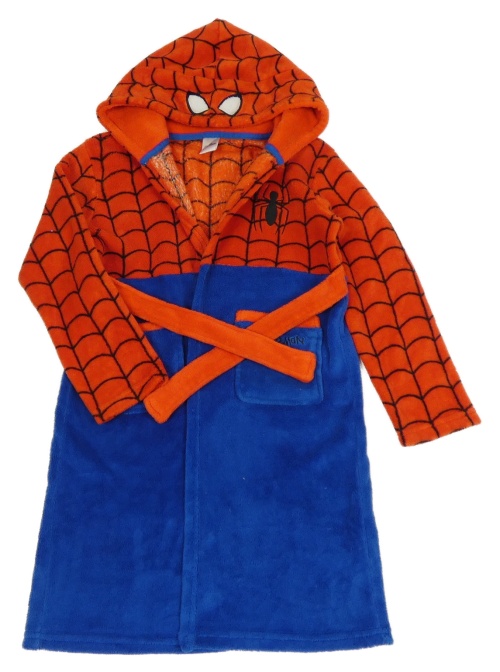 Červeno-tmavomodrý plyšový župan s kapucí - Spiderman