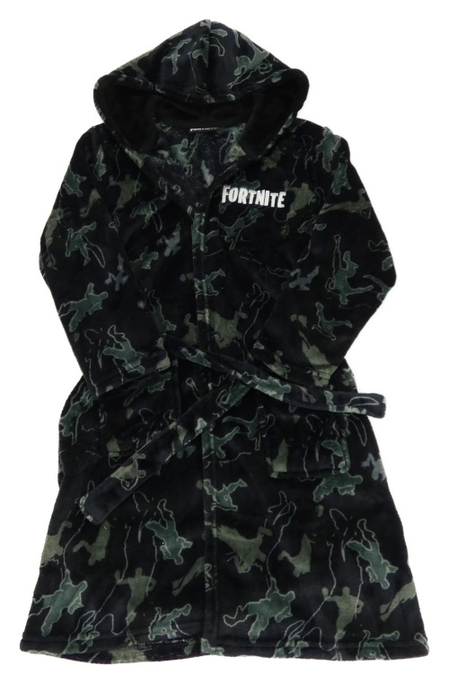 Černo-šedý chlupatý župan Fortinite s kapucí