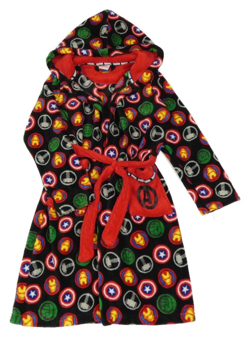 Černo-červeno-barevný plyšový župan se superhrdiny a kapucí Tu