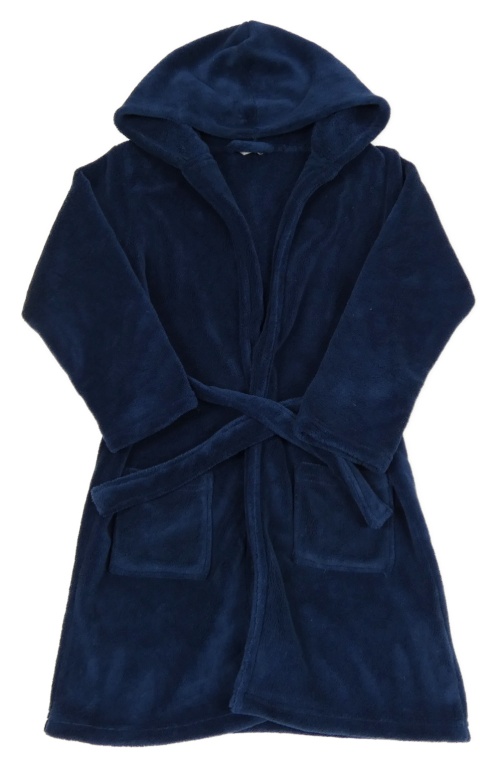 Tmavomodrý plyšový župan s kapucí