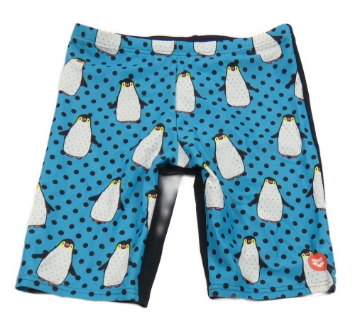 Modro-černé puntíkaté nohavičkové plavky s tučňáky