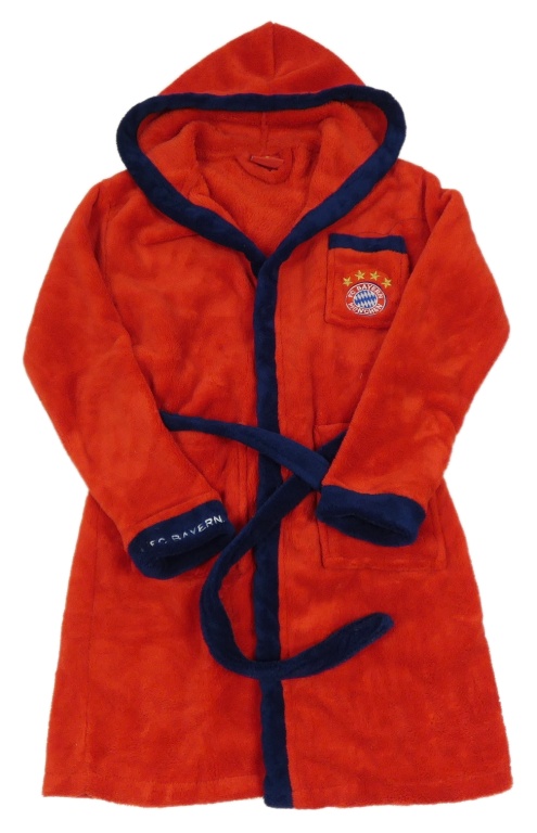 Červeno-tmavomodrý plyšový fotbalový župan s kapucí - FC BAYERN