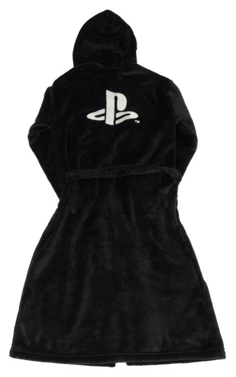 Černý chlupatý župan s PlayStation a kapucí H&M