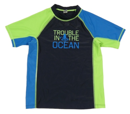 Černo-modro-zelené UV tričko s nápisy a chobotnicí YIGGA