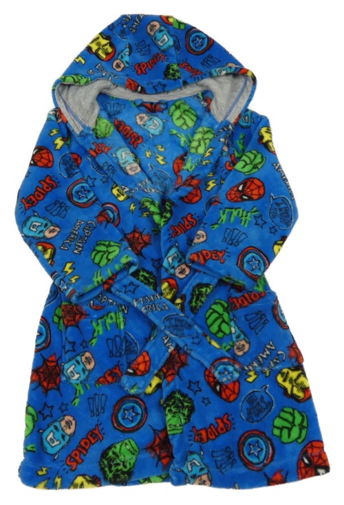 Tmavomodrý chlupatý župan s hrdiny kapucí Marvel