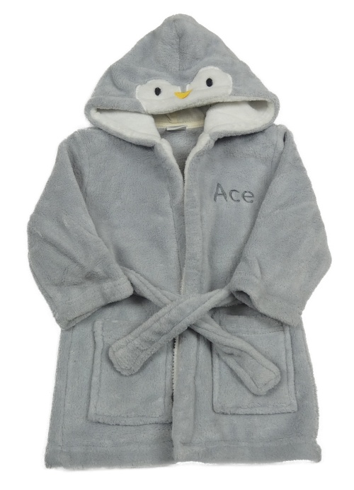 Šedý chlupatý župan s kapucí - tučňák