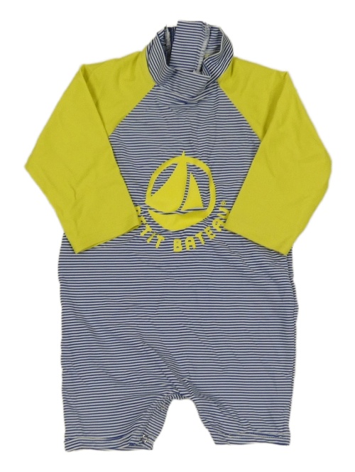 Žluto-modro-bílý pruhovaný UV overal