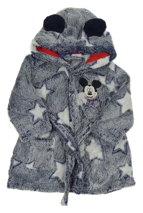 Tmavomodrý melírovaný chlupatý župan s hvězdami s Mickeym a kapucí Matalan