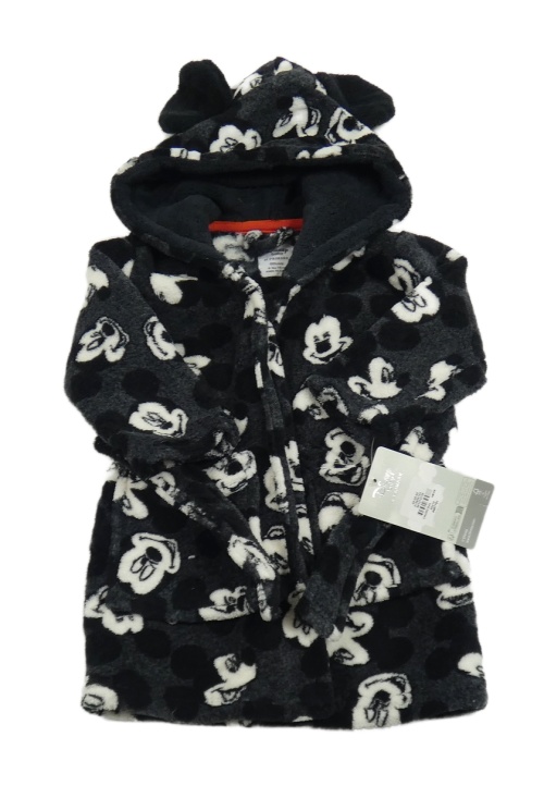 Nové - tmavošedo-černý melírovaný plyšový župan s Mickey a kapucí PRIMARK