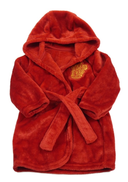 Červený chluatý župan s nášivkou Harry Potter a kapucí