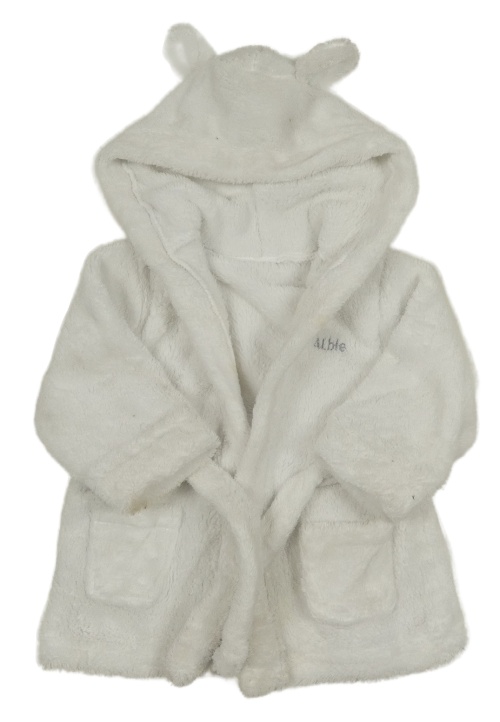 Bílý chlupatý župan s páskem a kapucí