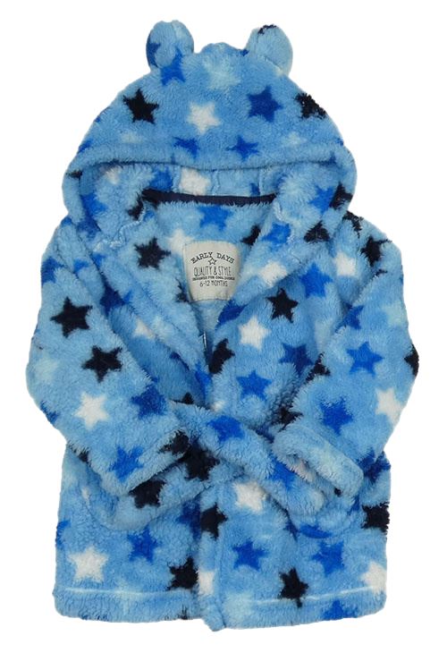 Modrý chlupatý župan s hvězdičkami a kapucí s oušky early days