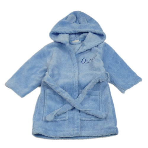 Světlemodrý chlupatý župan s nápisem a kapucí