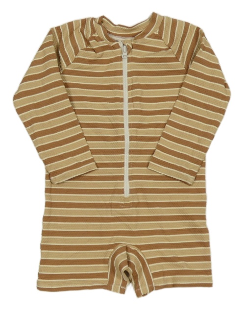 Hnědo-pískovo-smetanový pruhovaný UV kraťasový overal H&M