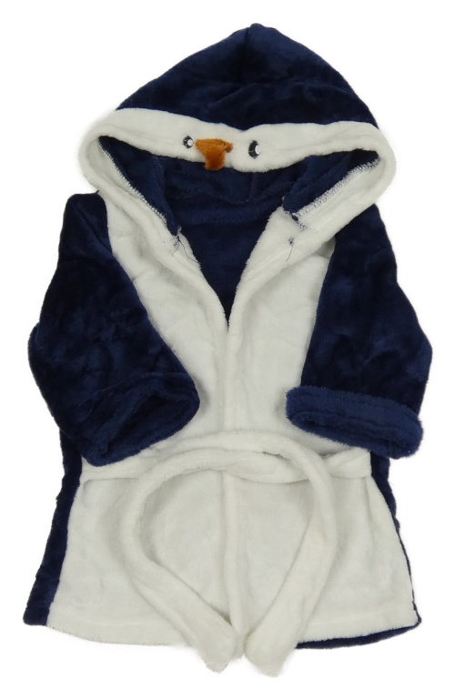 Tmavomodro-bílý chlupatý župan s kapucí - tučňák
