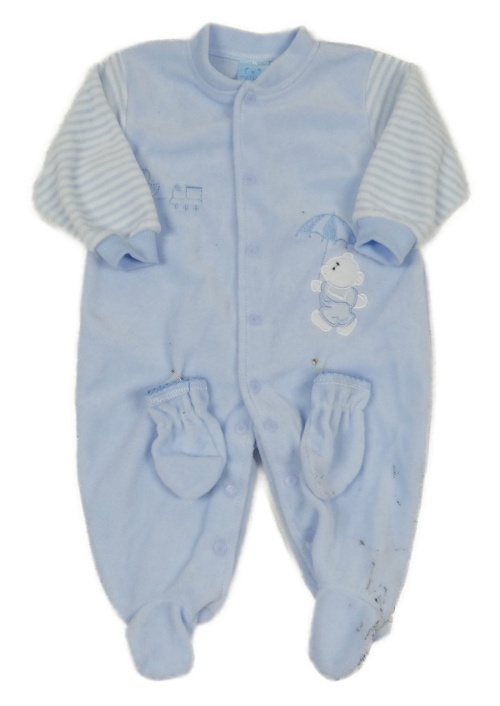 Nové - 2Set - Světlemodro-bílý fleecový overal s medvídkem a pruhy + rukavice