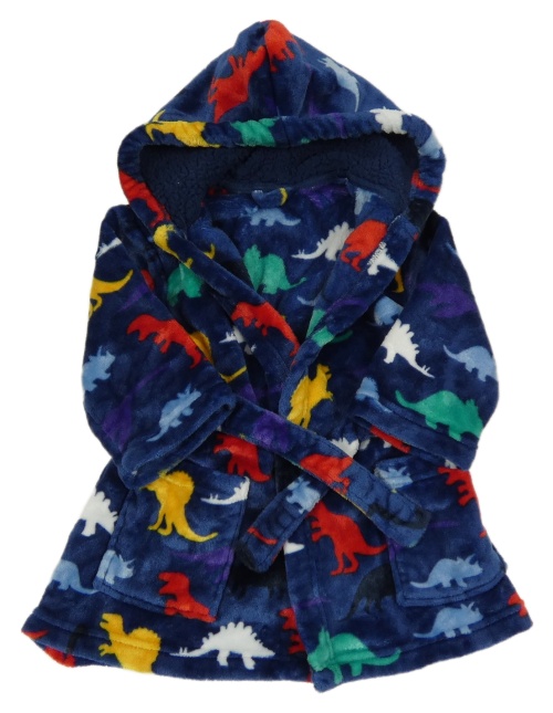Tmavomodrý chlupatý župan s dinosaury a kapucí Nutmeg