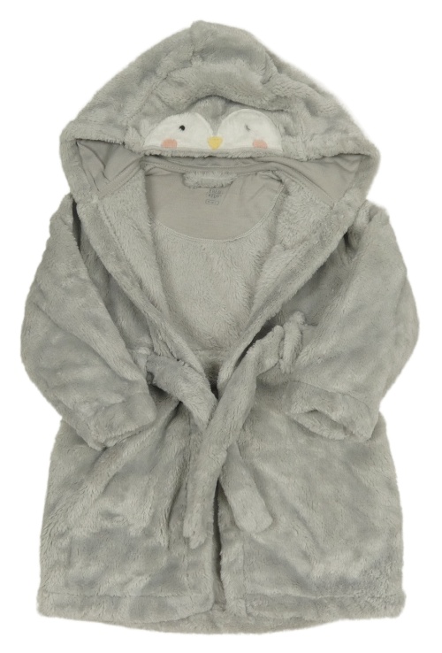 Šedý plyšový župan s tučňákem a kapucí F&F