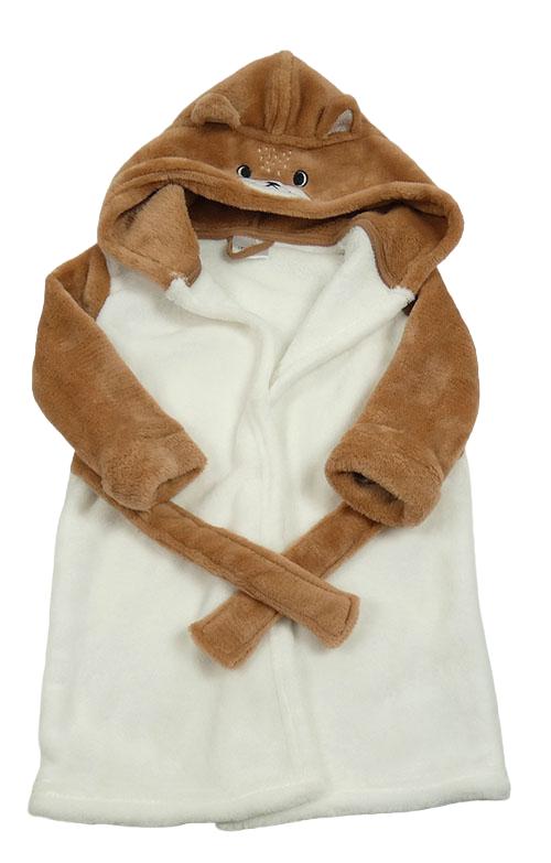 Bílo-hnědý chlupatý župan s kapucí - medvěd Orsolino