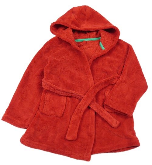 Červený chlupatý župan s kapucí