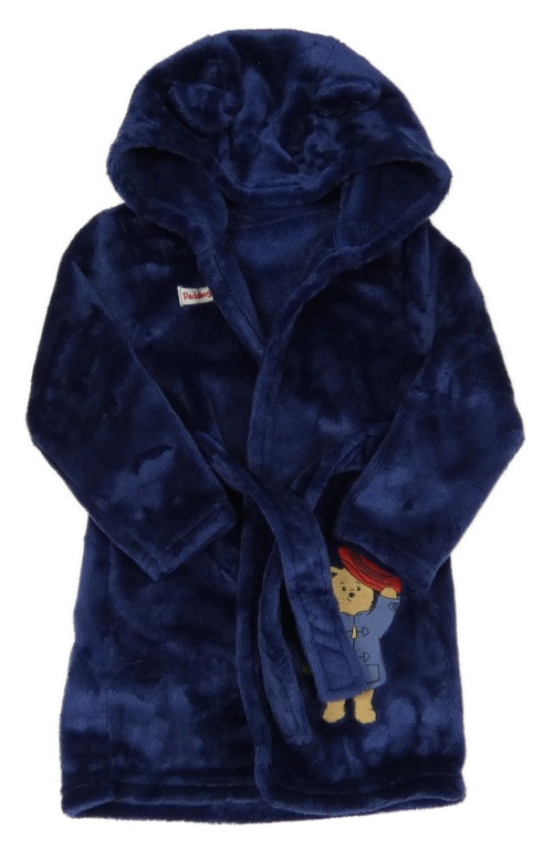 Tmavomodrý plyšový župan s Paddintonem a kapucí