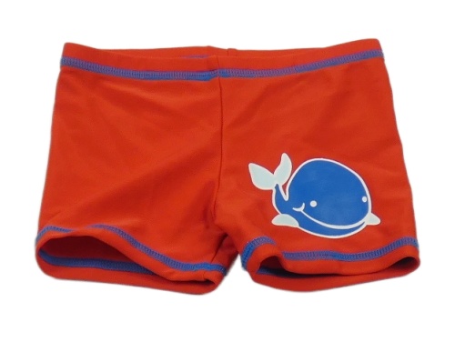 Červené nohavičkové plavky s velrybou