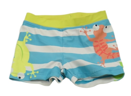 Bílo-světlemodro-zelené pruhované nohavičkové chlapecké plavky s ještěrkami Pusblu