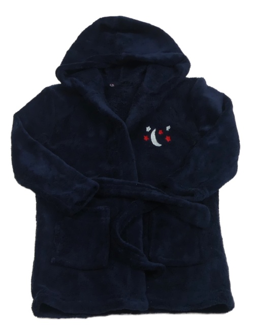 Tmavomodrý chlupatý župan s výšivkou a kapucí Early Days
