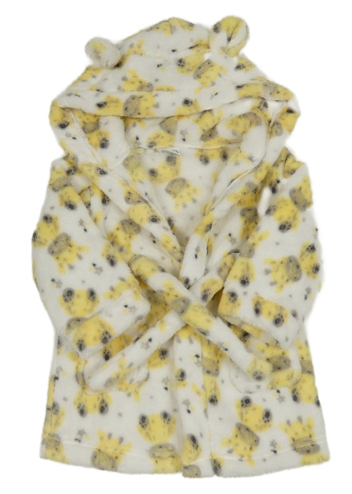 Bílý chlupatý župan se žirafami a kapucí