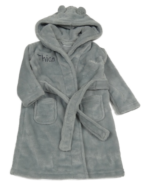 Šedý chlupatý župan s kapucí
