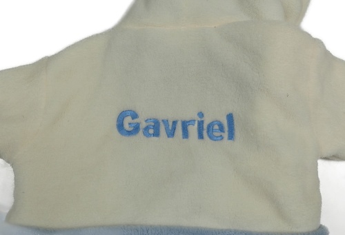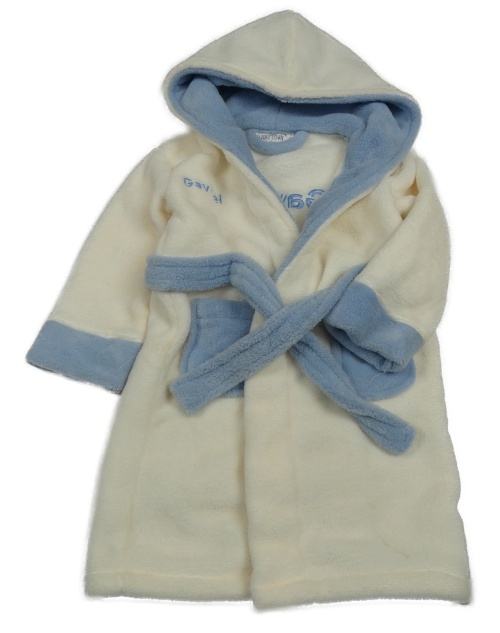 Bílo-modrý plyšový župan s kapucí BABYTOWN