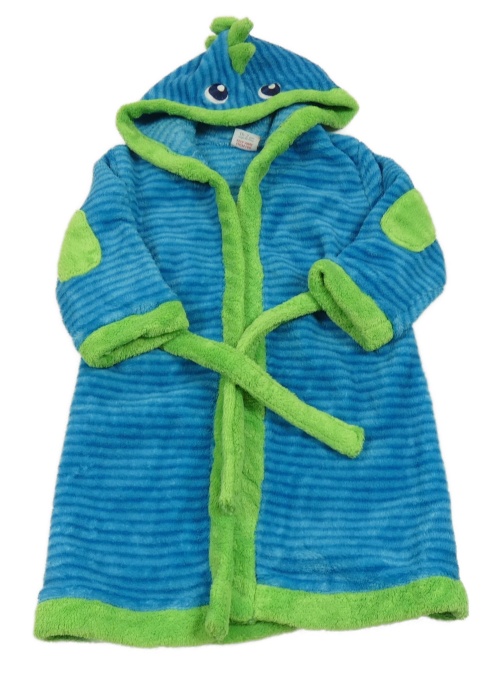 Modro-zelený chlupatý župan s proužky a kapucí- dinosaury Miniclub
