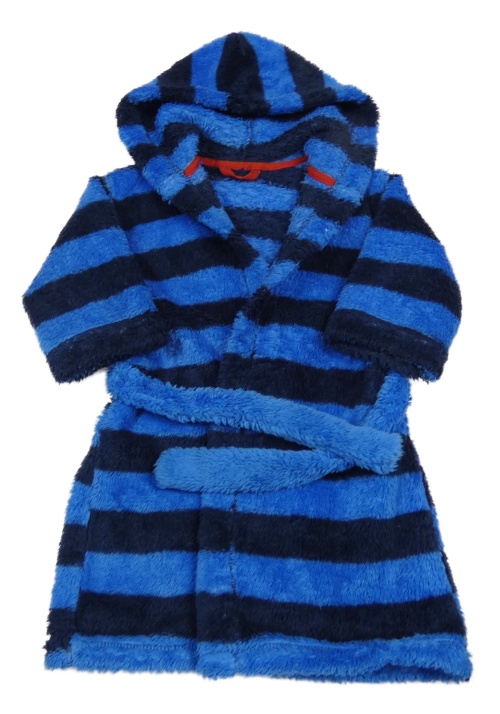 Modro-tmavomodrý pruhovaný chlupatý župan s kapucí M&S