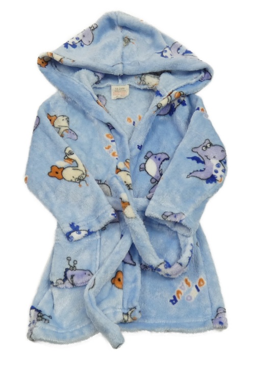 Světlemodrý chlupatý župan s draky a kapucí