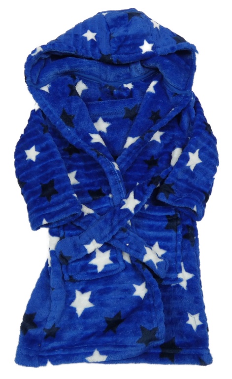 Modrý chlupatý župan s hvězdičkami a kapucí