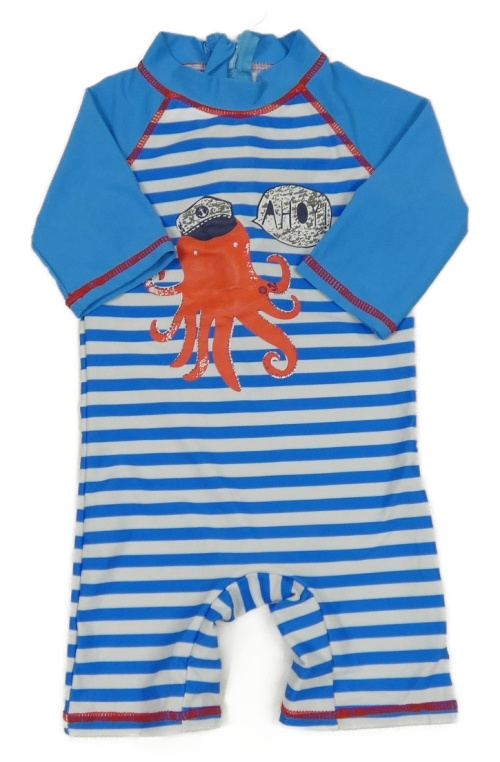 Modro-bílý pruhovaný UV overal s chobotnicí
