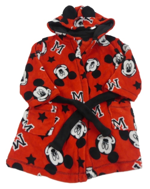 Červeno-černý plyšový župan s Mickeym a kapucí George