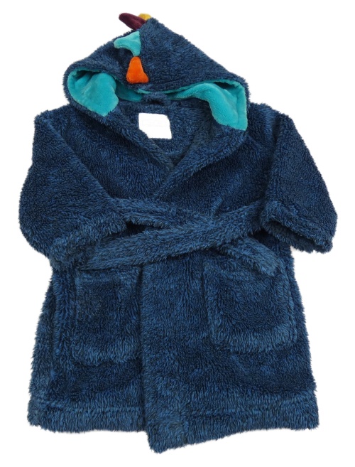 Tmavomodro-modrý melírovaný chlupatý župan s kapucí a ostny Next