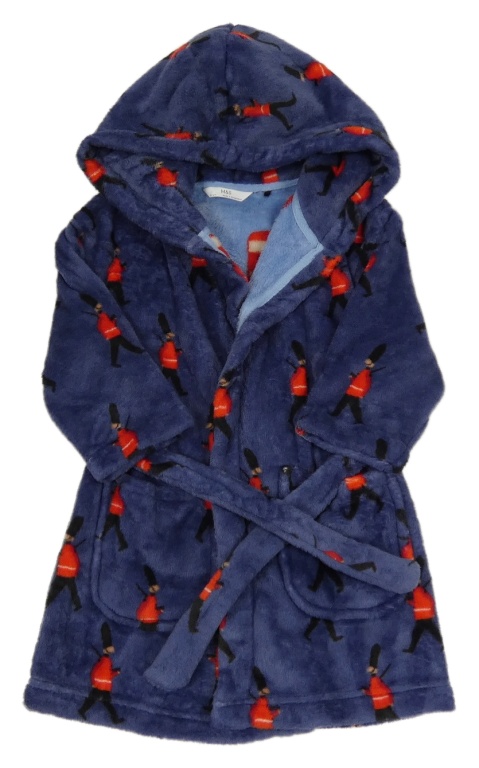 Tmavomodrý chlupatý župan s vojáky a kapucí M&S