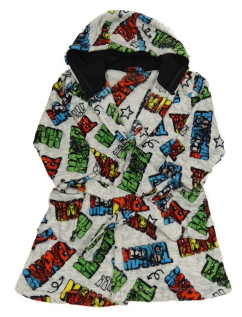 Světlešedý plyšový župan se superhrdiny a kapucí George