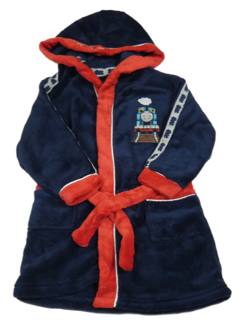 Tmavomodrý chlupatý župan s Mašinkou Tomášem a kapucí