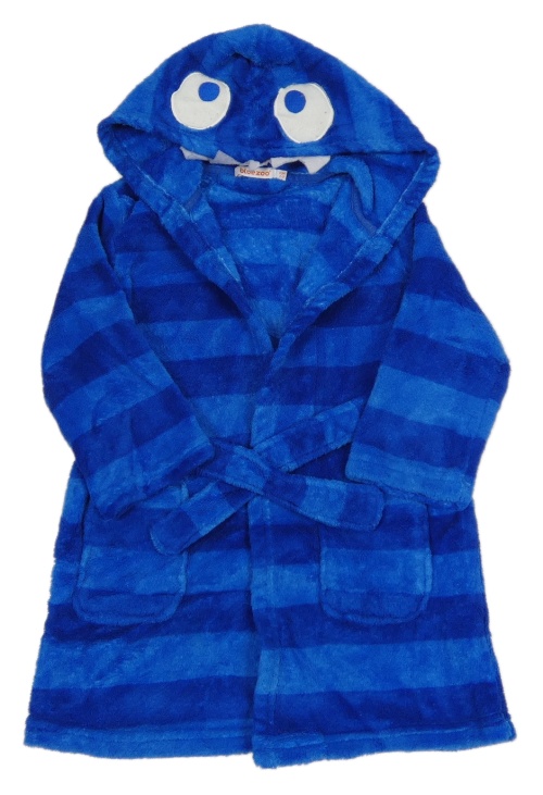 Safírovo-modrý pruhovaný plyšový župan s kapucí - příšerka Bluezoo
