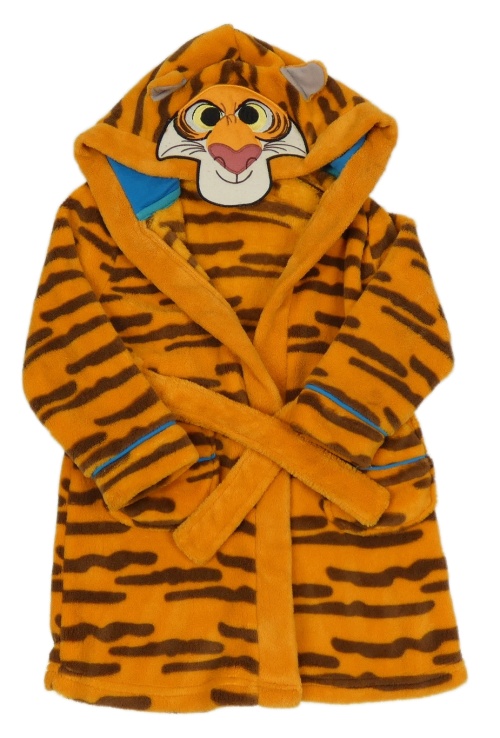Oranžovo-hnědý vzorovaný chlupatý župan s kapucí - tygr Disney